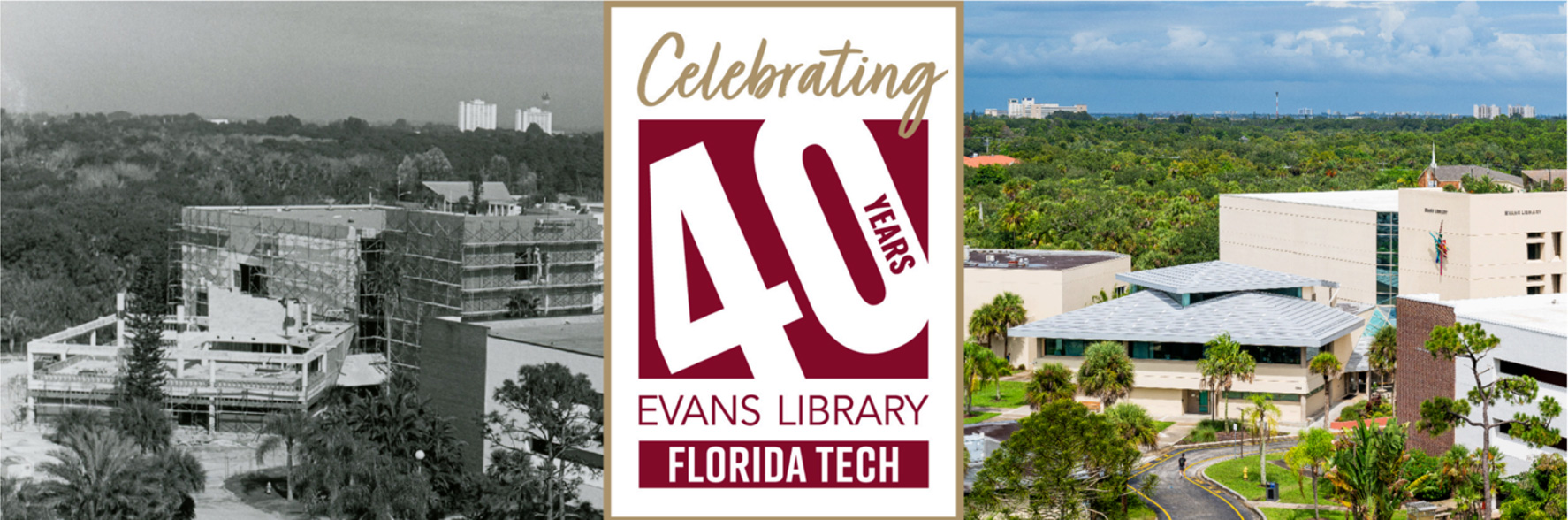Evans Library celebrated its 40th anniversary last year, marking four decades as a vital center of research and innovation at Florida Tech. Since its opening in 1984, Evans Library has evolved with the times and technology to meet the diverse needs of students, faculty, and the campus community.