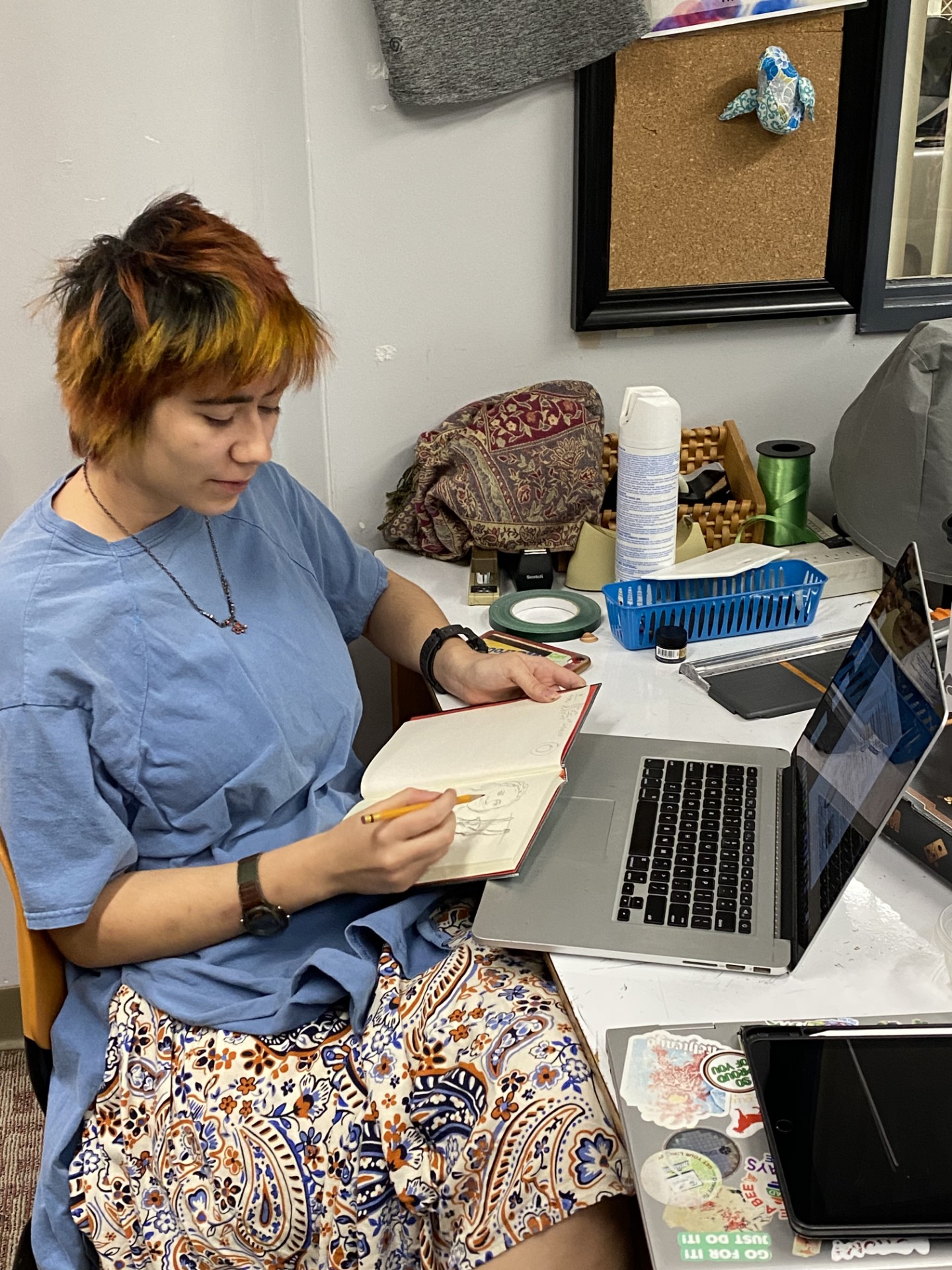 Sandesh More, a Computer Science Ph.D. student, blends his interest in digital and analog photography using the CraftLab’s tools, finding ways to merge old and new techniques in a space that encourages experimentation. He pops in often when he wants to make something meaningful—birthday gifts or greeting cards printed on the photo‑quality printer, or simply uses the space when he has downtime. “When I'm idle, I come here and do sketches, paintings and drawings.”