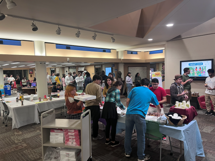 In addition to hands-on activities scheduled during Finals Week, our free-food events have become a cherished campus tradition. Through partnerships with the Campus Activities Board and the Office of Student Advising, we provide free bagels to welcome early-morning studiers and offer coffee and donuts as a much-needed energy boost for those working late into the night. These treats provide more than just a tasty snack; they also help create moments of comfort and community, reminding students to take time to nourish their bodies and to connect with friends amid the high-pressure week.